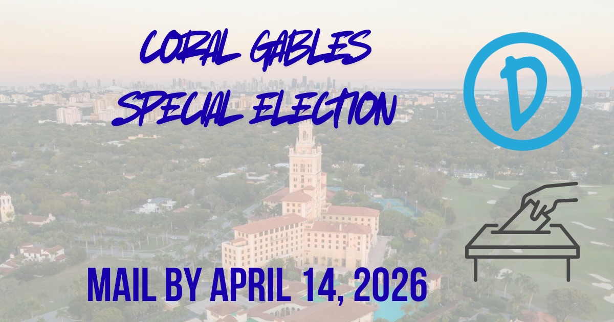 Coral Gables residents registered to vote by March 23 should expect to receive a mail ballot in advance of the city’s April 21 Special Election. This election will only be conducted via mail.