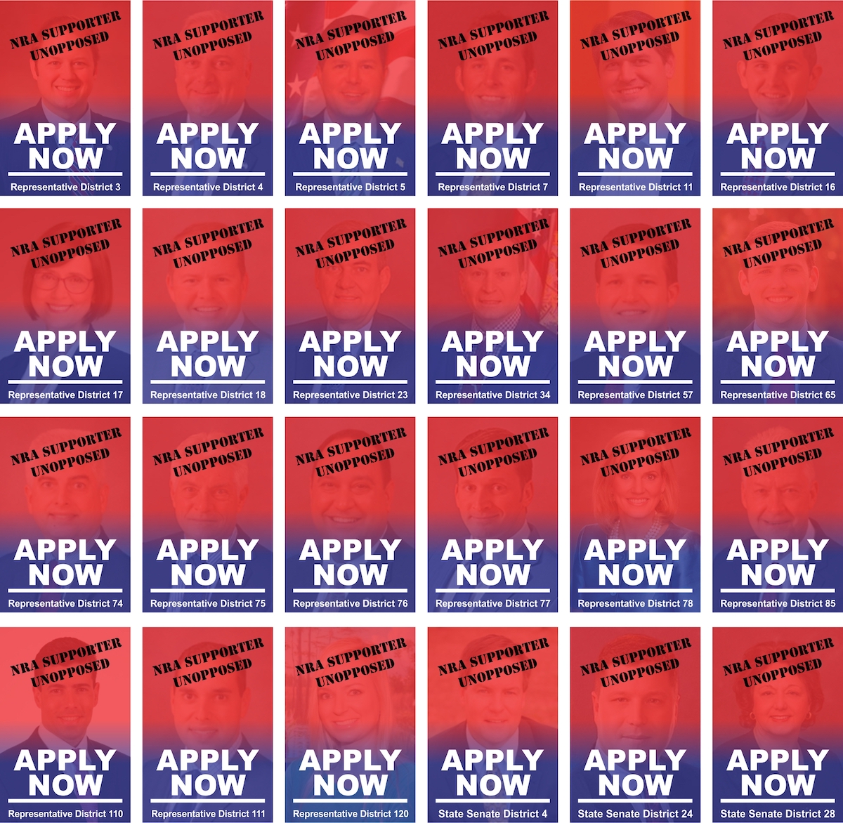 Do you want gun reform in Florida? These 25 legislators have an A or A+ rating from the National Rifle Association and they have no opponent. Are you a community leader in any of these districts? RUN. RUN on gun reform. RUN to protect the lives of your loved ones. RUN like your life depended on it.