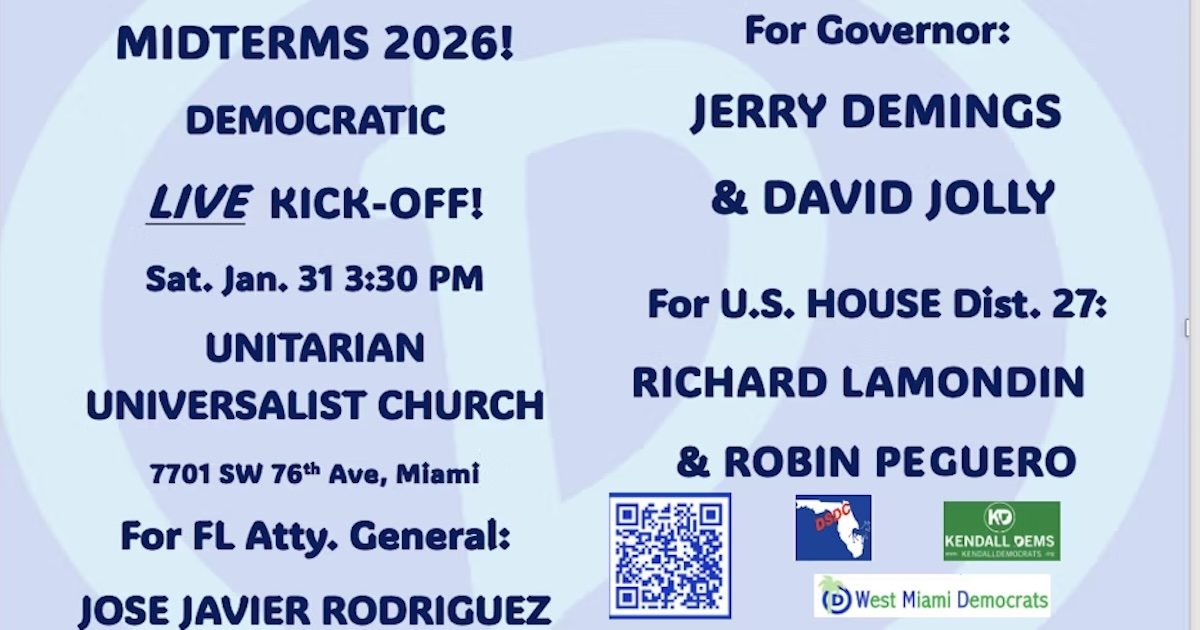 Who will defeat Rep. Maria Elvira Salazar in 2026? The Democratic candidates for Florida's 27th Congressional District will be speaking with voters on Saturday, January 31st and we invite you to join us. Come hear from Richard Lamondin and Robin Peguero.